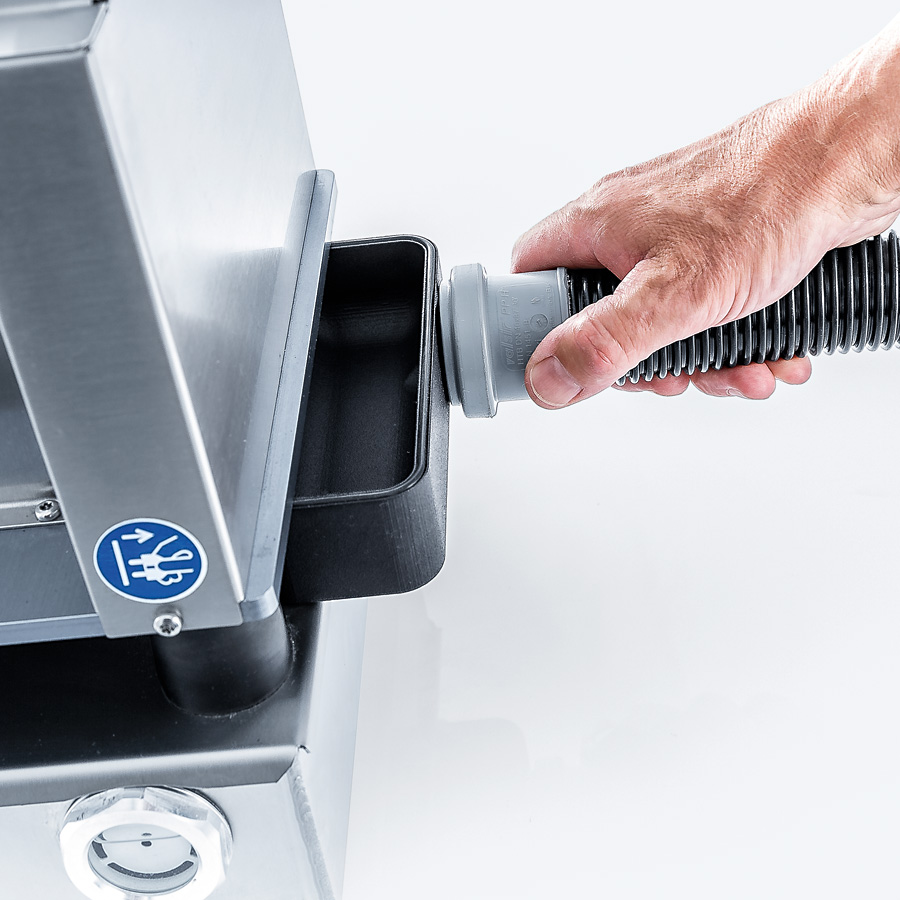 The knife guides ensure that the hand knives are always ground with the correct cutting edge angle. Integrated magnets support the guiding of the knife and make the sharpening process highly simple.