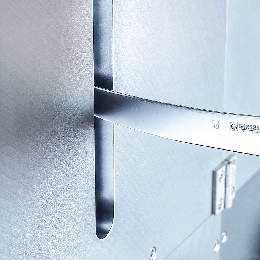 Notre capacité d'innovation élevée et notre soif d’optimisation permanente sont deux éléments clés de notre philosophie d'entreprise. Afin de continuer d'optimiser la qualité de coupe des couteaux manuels lors de l’affûtage, nous avons intégré les derniers progrès techniques dans la conception de la E 50. Cette machine entièrement automatique affûte les couteaux manuels de tailles et de formes différentes Le bras de préhension contrôlé par 4 axes retire le couteau du magasin au niveau de la poignée. La forme du couteau est identifiée individuellement et le couteau est affûté, démorfilé et poli en fonction de sa forme. Le bras de préhension remet ensuite le couteau traité dans le magasin.