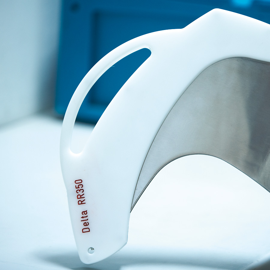 Der Messerschutz schützt das Personal vor Schnittverletzungen beim Ausräumen des Kutterdeckels.