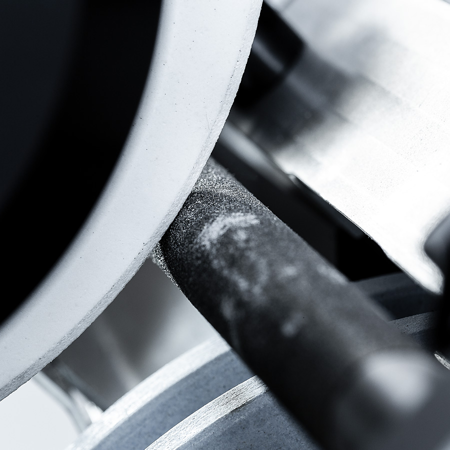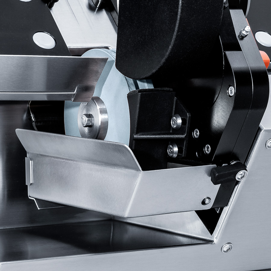Der Schleiftisch ist schräg zum Benutzer hin angeordnet. Die eingearbeiteten Teflongleiter reduzieren die Reibung zwischen Schleiftisch und Kopierschleifplatte auf ein Minimum. Das Zusammenspiel dieser ergonomisch optimierten Einzelkomponenten ermöglicht ein ermüdungsfreies Arbeiten und macht die Bedienung simpel und sicher.